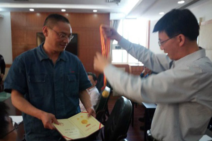 5月24日下午,縣人大常委會副主任、縣總工會主席徐明德,縣總工會黨組書記、常務(wù)副主席羅興盛,縣總工會副主席胡吉明,縣總工會副主席王英一行到公司調(diào)研生產(chǎn)情況,徐明德向公司黨委書記、董事長程伊彬同志頒發(fā)了重慶“五一”勞動獎?wù)潞妥C書。